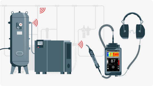 Detect leaks in compressed air, gas and vacuum systems and reduce of energy costs for by up to 30 percent