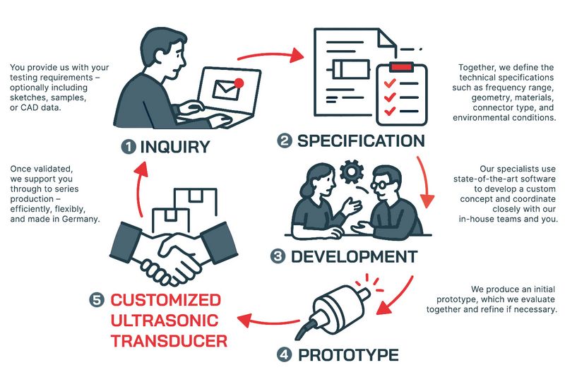 Once we have manufactured a bespoke Probe, we are able to guarantee a long-term supply with excellent reproducibility of the acoustic properties. This approach has resulted in long-standing partnerships with a number of renowned clients in the international NDT market.